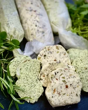 One way to use up those fresh herbs is to make what’s called compound butter. You mix finely chopped herbs with softened butter and it can be used to finish grilled meat, fish or poultry or vegetables. Even better, compound butter can be used as soon as it’s made, refrigerated again or even tightly wrapped and frozen.